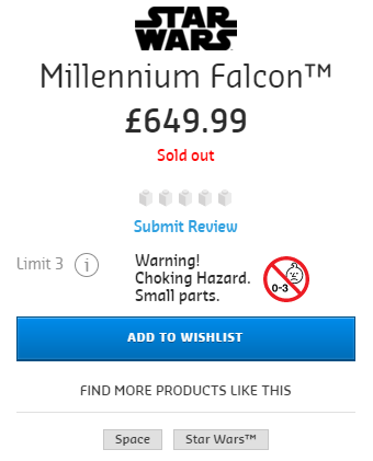 Brikkyy13 Posted September 14, 2017 Posted September 14, 2017 Just now, ElectroDiva said: I hope so. Apparently it's "until stocks run out" though so I guess it would depend on how many orders they got this morning Based on people's order numbers on the brickset forums we can guess that it was upwards of 3400 before the site crashed. That's a lot of falcons! Also, the product page no longer says "Will ship by October 1," it now says "Will ship in 30 days." Only a matter of time before it sells out now. Quote